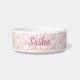 Mostre o seu amor pelo seu precioso, membro da família de quatro pernas, com esta bonito tigela que apresenta um padrão de corações pintados cor-de-rosa pálido. Adicione facilmente o nome do seu animal de estimação na caixa fornecida.