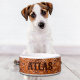 A tigela de comida de cão impressão de couro da Rússia ocidental. Acessórios de decoração de cowboy.