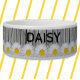 Daisy Floral Border on Rustic Old Weathered Wood Fence Personalised Dog's Feeding and Water Bowl apresenta uma fileira de margaridas amarelas e brancas ao longo de uma vedação de madeira velha e rústica, que tem virado as cinzas de não estarem no clima. Acima da fronteira está o nome do cachorro. Nós usamos o nome Daisy, mas você pode mudá-lo para o nome do seu cachorro e adicionar qualquer texto ou imagem que quiser.