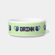 Sirva seu animal de estimação com estilo com esta tigela de água de cerâmica para animais. Ela apresenta algumas patas azuis impressas em corações e a palavra "Drink" em azul marinho, contra um fundo verde sage. Não é apenas elegante, mas também segura para micro-ondas e lava-louças.
