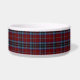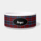 Na moda com um prato de comida de cão com o padrão de xadrez tartã do clã vermelho, azul e preto MacTavish, em volta do prato, e uma área de texto preto oval, no meio, para o nome do seu animal de estimação. O texto branco lhe permite personalizar com o nome do seu animal de estimação, para uma tigela personalizada da qual seu amigo canino pode se orgulhar.
