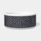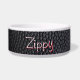 Um couro sintético preto envolve esta tigela simples com um visual minimalista. Ela apresenta o nome do seu melhor amigo em uma fonte divertida branca, sombreada com vermelho. Basta substituir o nome do seu pet clicando no link "personalizar".