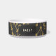O seu cão vai adorar esta tigela de comida para animais de estimação fofa com um design moderno e chic. O design apresenta um padrão de frutas botânicas douradas com fundo preto. Personalize com o nome do seu animal de estimação para torná-lo ainda mais especial.