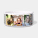 Tigela de comida personalizada para cães em cerâmica que você adiciona fotos e o nome do seu cão com modelos para 6 fotos e uma cor de fundo personalizável (mostrada com cinza). HAMbyWhiteGlove.