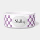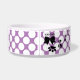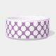 Tigela de comida para cães personalizada tem bolinhas brancas e fundo de qualquer cor (basta personalizar e customizar). Adicione o nome do seu cão no prompt. A parte de trás da tigela tem nosso logotipo e pegadas adoráveis (para um visual de designer personalizado!)