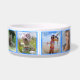 Tigela de comida personalizada para cachorro onde você adiciona fotos e o nome do seu cachorro. Basta escolher a opção personalizar para atualizar os campos. A cor do fundo pode ser alterada com a opção personalizar. 203-302-0337 HAMbyWhiteGlove. Mostrado em Azul.