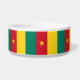 Adicione um toque de orgulho nacional à hora da refeição do seu amigo peludo com este elegante prato para animais de estimação apresentando a vibrante bandeira dos Camarões. Mostrando as icônicas listras verticais verde, vermelha e amarela, com a ousada estrela amarela no centro, este prato patriótico combina funcionalidade com uma orgulhosa exibição da identidade camaronesa. Perfeito tanto para comida quanto para água, foi projetado para se destacar enquanto serve seu animal de estimação de uma maneira significativa.
