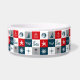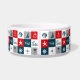 Design com temas náuticos, com marinho e decoração aquática, em quadrados brancos, vermelhos, azuis e cinzas sem costura