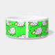 tigela de comida de ovelha. Um bando divertido de design de cartoon de ovelha nesta tigela de comida de estimação. Ideal para cães, especialmente cães ovelhas. Fundo verde.