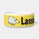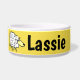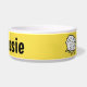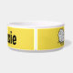Personalize esta tigela de comida de cartoon design de ovelha divertida. Ideal para cães, especialmente cães ovelhas. Fundo amarelo.