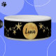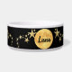 Luna de Lua Negra e Dourada e Estrelas Feeding personalizado de animais de estimação e Water Bowl apresentam uma lua/luna de cheio com estrelas de ouro sobre fundo negro que imita o céu noturno. Personalize-o com o nome do seu animal de estimação — trabalha para um cão ou gato ou outro animal de estimação — e mude ou adicione facilmente suas próprias imagens, texto ou fundo para criar um animal de estimação exclusivo ou deixe-o como projetado para uma legal tigela de animais de estimação. Veja outras tigelas personalizadas para animais de estimação, bem como decorações personalizadas para casa, escritório ou exterior em zazzle.com/DIYDecor.