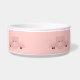 Uma tigela de estimação personalizada com um desenho de um rosto de porco rosa giro. Levantado pelos cascos pretos dele e a mijar em ti. Desenho bonito e caprichoso. Coloque um fundo cor-de-rosa com alguns corações desbotados aqui e ali.