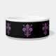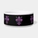 Um elegante roxo roxo e roxo de lis roxo em preto num prato de comida de cão. Adicione o nome do seu cachorro a ele.