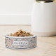 Aperte seu pãozinho com nossa tigela de cachorro personalizada, apresentando um padrão floral de cor d'água de pêssego, rosas cor-de-rosa pinceladas e hidrangeas brancas cremosas com sotaques verdes. Personalize com o nome do seu cachorro na frente em rico azul-marinho da meia-noite.