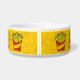 Ilustração de desenho animado de um pequeno pacote de batatas fritas. Imagem do contorno da comida de lixo ícones de fundo amarelo. Custom Text.