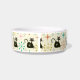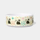 Este é um padrão de gatos atômicos pretos, bonitos, com rajadas de retro-starbursts em cor rosa, laranja e lacre sobre fundo de creme leve. É uma tigela excelente para seu gato