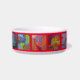 tigela de gato vermelho com gatos coloridos