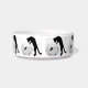 Silhueta de um gato curioso olhando para uma tigela de peixe enquanto o peixe olha para trás.