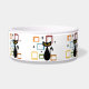 Ilustração colorida do estilo do Meio século abstrato com gato preto, estrelas pretas e ornamentação colorida em fundo branco. Você pode adicionar seu nome/monograma para personalizar o item.