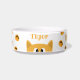 tigela de gengibre com estampas de pata e um gato curioso olhando da base. Também disponível para gatos cinzas e gatos pretos.