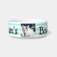 Grande presente feito sob encomenda do animal de estimação para proprietários do cão ou do gato. Adicione a imagem do seu cão a esta bacia bonito do cão com seus nome e impressões da pata.