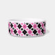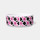 Este prato de estimação bonito exibe um padrão de impressão de argyle rosa e preto e um espaço para adicionar o nome do seu animal de estimação.