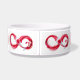 Símbolo infinito do fluxo contínuo de vinho tinto que entra em vidro de vidro sobre fundo branco.