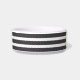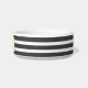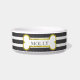 Apetite do osso! Esta bacia do animal de estimação caracteriza listras preto e branco do ônix clássico e no centro uma beira metálica do osso do ouro. Personalize com seu nome e pia batismal de animal de estimação da sua escolha. Esta bacia cerâmica bonita vem em dois tamanhos e tem muitas listras coloridas na moda diferentes a escolher em minha loja. Os detalhes metálicos do ouro são simulados nos trabalhos de arte. Visite minha loja, olhos côr de avelã Co para um design mais bonito e mais clássico.