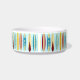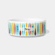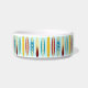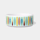 Tigela de estimação com design de longboards antigos e texto personalizável.