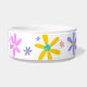 Alegre desenho de Margarida à sua escolha de lindo prato de cerâmica para animais de estimação. Um gráfico brilhante e positivo personalizável na cor de fundo favorita do seu animal de estimação. Adicione um toque brilhante e positivo de cor à rotina diária do seu 'melhor amigo'. Simples e doce... O que mais o seu cão pode pedir? Biscoitos vendidos separadamente...