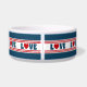 Design de amor com forma cardíaca em estilo náutico sobre fundo listrado a azul, vermelho e branco
