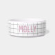 Tigela para animais de estimação com design moderno e minimalista em tons de rosa e branco. Pode ser personalizada com o nome do seu animal de estimação ou como um presente atencioso. Acessórios combinando estão disponíveis nesta paleta de cores.
