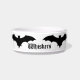 Os silhuetas de morcego negro bonitinho do Halloween rodeiam uma tigela de comida de gato personalizada que você pode personalizar com o nome do seu gato. Isso seria perfeito para todos aqueles gatinhos Góticos lá fora. Mais acessórios góticos de animais de estimação podem ser encontrados na minha loja.