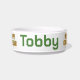 Tigela de Natal para cães com Feliz Natal e Ano Novo em letras vermelhas e verdes contornadas em amarelo e personalizável com o nome do animal de estimação. Ótima ideia de presente para amigos ou familiares com animais de estimação durante as festas.
