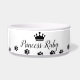 Todo animal de estimação merece jantar como realeza! Esta tigela personalizada com tema real para animais de estimação apresenta a citação "Tigela da Princesa [Nome do Animal]" escrita em uma fonte de letra elegante, adornada com uma coroa e impressões delicadas de patas. É a maneira perfeita de tornar a hora da refeição ainda mais especial para o seu querido animal de estimação.