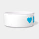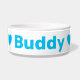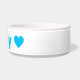 Esta tigela de cão cerâmico tem dois corações azuis e pode ser personalizada com o nome do seu cão. Escolha qualquer estilo de fonte e cor que você preferir em vez do azul mostrado aqui. Você pode mover os corações e ajustar seu tamanho também para fazer este prato de cachorro exatamente para seu cachorro. Faz um presente único e divertido para qualquer pai de cachorro!