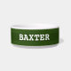 Verde caçador riscado com um tom mais leve de verde. Uma tigela de cachorro clássica e bonito, com nome personalizável em branco.