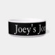 A tigela de cão mostrada a preto e branco com um nome de cão, personalize este item e mude o nome para o seu nome de animais de estimação.