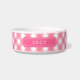 Uma tigela de comida de animais de estimação com nome personalizado adorável, com um padrão e etiqueta cor-de-rosa de bebê na moda. Personalize-o substituindo o texto do marcador de posição. Para obter mais opções, como alterar a fonte e seu tamanho, clique no botão "Personalizar". *Observe que a Marca d'água do Zazzle que aparece na visualização de zoom não aparecerá no produto impresso final. © Rosewood e Citrus
