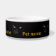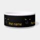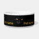 Um gato preto espantoso com olhos amarelos dá uma impressão mágica de ouro em veludo preto. Uma tigela elegante. Personalizável. Você pode alterar ou excluir o texto modelo. Divirta-se e alimente seu animal de estimação!