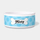 Estrague seu cão com esta bacia personalizada do cão. Tem uma luz - bolinhas azuis o fundo modelado lá é um osso de cão branco grande no centro onde você personaliza com nome do seu cão. Pamper seu cão com muitos artigos que nós temos em nossa loja.