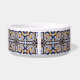 Design de padrão-azulejo português com decoração floral azul, branca e amarela