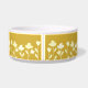 Uma tigela de ouro adorável com um padrão floral. Um simples padrão repetitivo de flores com caules, folhas com flores pequenas. Há uma pequena seção para personalizar isso e adicionar texto personalizado, como um nome.