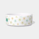 Esta fabulosa tigela de animais de estimação moderna apresenta fogos de artifício estrelados em laranja, verde e turquesa juntamente com o nome do seu animal de estimação em uma fonte casual preta. Adicione um elemento divertido ao tempo de alimentação do seu animal de estimação!