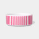 A tigela de cor de pêssego é mostrada em branco com um impressão de sotaque em um design de listras cor-de-rosa. Escolha entre uma tigela de tamanho médio ou grande. Personalize esta tigela e adicione texto ou design ou comprar como está.