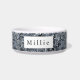 Esta tigela de animais de estimação é mostrada em um padrão de abstrato azul multicolorido. Personalize este item e altere o texto para o seu. Imagem do stock