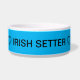 Coleira temática para cães Setter Irlandês em azul com uma imagem de um Setter Irlandês no meio e ❤ IRISH SETTER ❤ de cada lado.