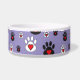 Seu querido animal de estimação vai comer em estilo com esta tigela azul colorida com patas brancas e pretas com coração!
