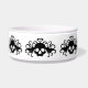 Um gato gótico ou prato de cão com um padrão de crânios alados pretos com corações à sua volta. Adicione o nome do seu animal de estimação a ele.