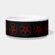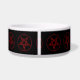 Pentagrama vermelho, invertido, texturizado em círculo, sobre fundo preto. Símbolo oculto. 666